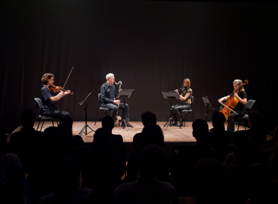 für Flöte, Klarinette, Violine, Violoncello und vier Schlagzeuger
